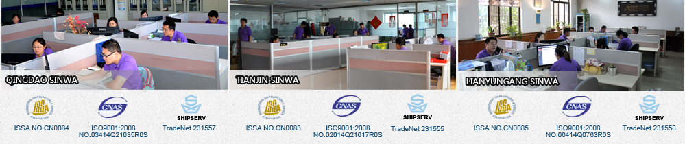 China Sinwa Group was founded in 1995, which is one of the most influential ship-chandlers in China. Headquartered in Dalian, China Sinwa has established branches in Qingdao, Tianjin, Lianyungang, Shanghai, Guangzhou, Xiamen and Zhoushan. Other ports also can be supplied upon your request. As a best-in-class ship-chandler, we have been certified by ISO 9001-2008, and qualified the member of ISSA (ISSA NO. Dalian: CN0064, Qingdao: CN0084, Tianjin: CN0083, Lianyungang: CN0085), also we have been granted the membership of Shipserv.